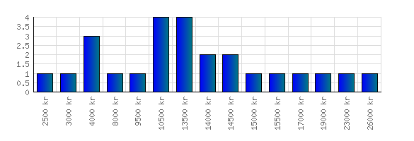 Værløse og omegn, der er 25 lejligheder til leje. Lejlighedernes størelse fordeler sig som vist på grafiken. Se alle lejlighederne her.